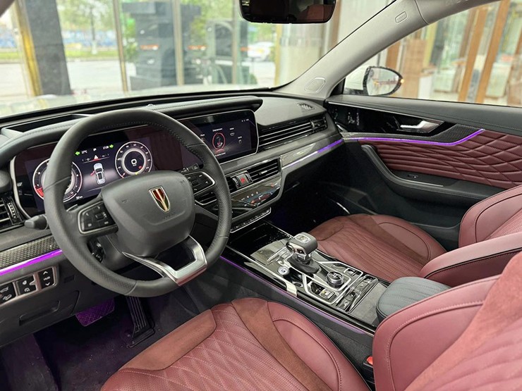 Khoang lái của Hongqi HS5 được thiết kế gọn gàng nhưng không kém phần hiện đại. Xe trang bị hai màn hình lớn, bao gồm màn hình trung tâm cảm ứng và màn hình sau vô-lăng. Bên cạnh đó, nội thất còn có: