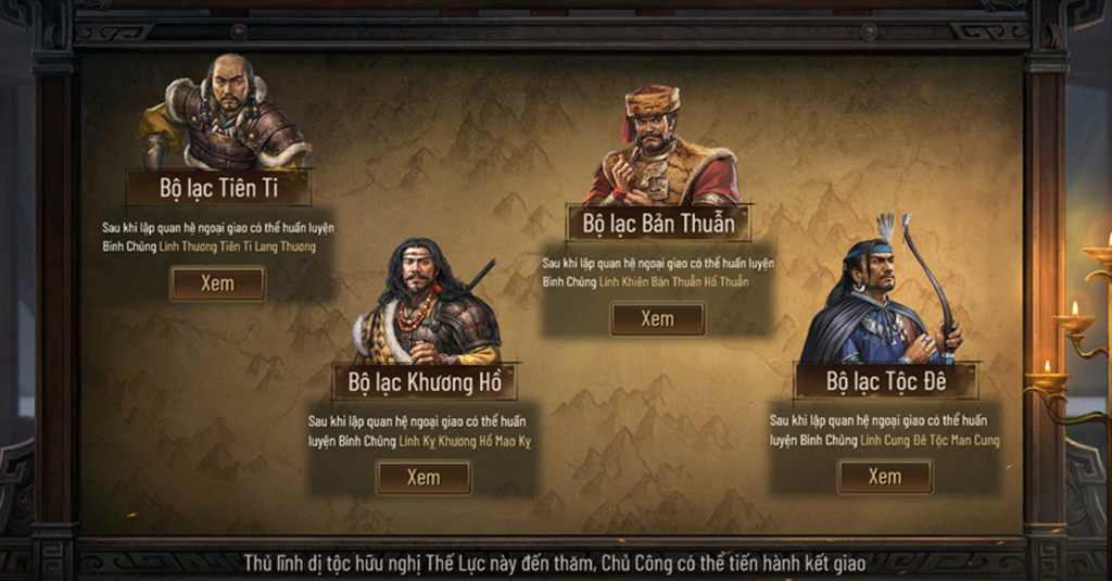 Bằng việc thiết lập quan hệ với các bộ lạc, người chơi sẽ mở khóa nhiều tính năng độc quyền như Chi Viện Dị Tộc, Tiếp Quản Cửa Ải, Xe Trống Bộ Lạc, Bộ Lạc Chi Viện, tăng cường lực chiến trên chiến trường.