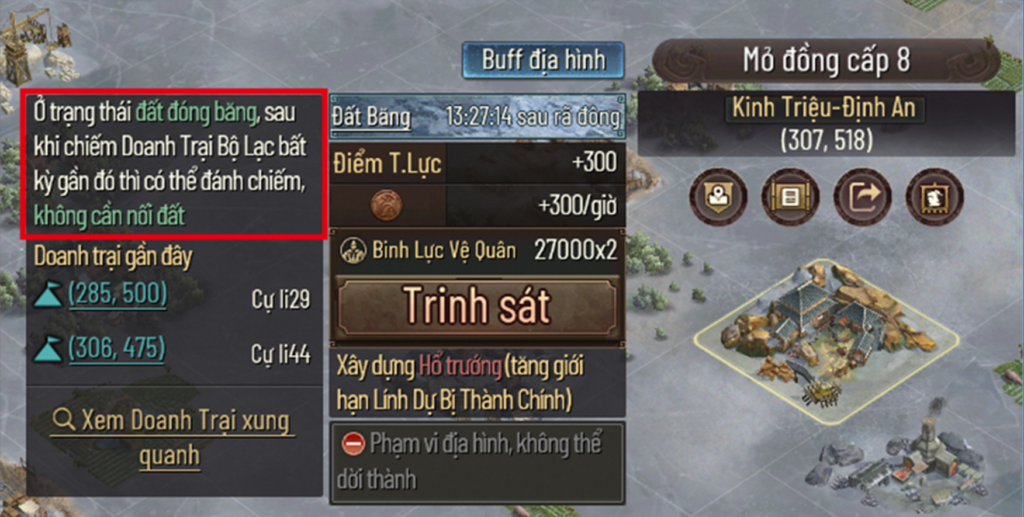 - Khi thời tiết Lạnh Lẻo, Đất Cát sẽ biến thành Đất Lạnh, các con sông đóng băng, cho phép quân đội di chuyển qua.