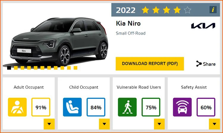 Kia Niro được thử nghiệm với hai phiên bản, trong đó bản có gói an toàn Safety Pack đạt 5 sao, còn bản tiêu chuẩn chỉ nhận được 4 sao – thấp hơn hai mẫu xe Trung Quốc. Điều này làm dấy lên câu hỏi về độ an toàn của xe Hàn so với các đối thủ mới nổi từ Trung Quốc.